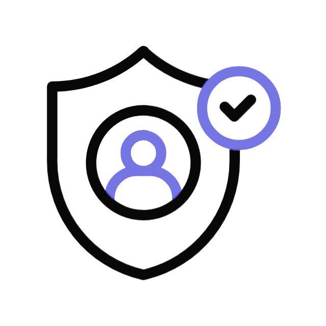 Bouclier avec une silhouette d'utilisateur et une coche, symbole de sécurité ou de protection des données
