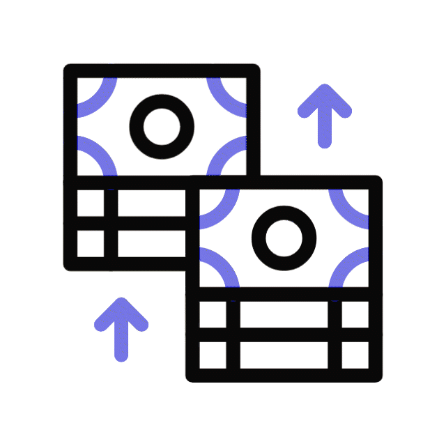 Deux blocs représentant des palets de hockey avec des flèches bleues pointant vers le haut.