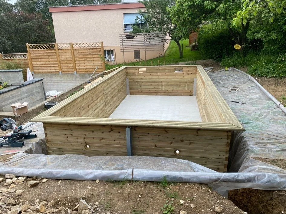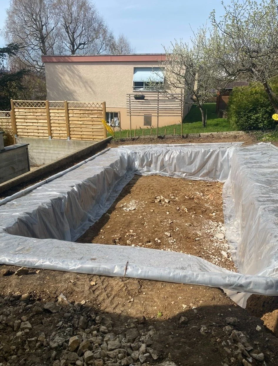 Due à la pente du terrain, nous avons décidé de faire une piscine semi-enterrée.